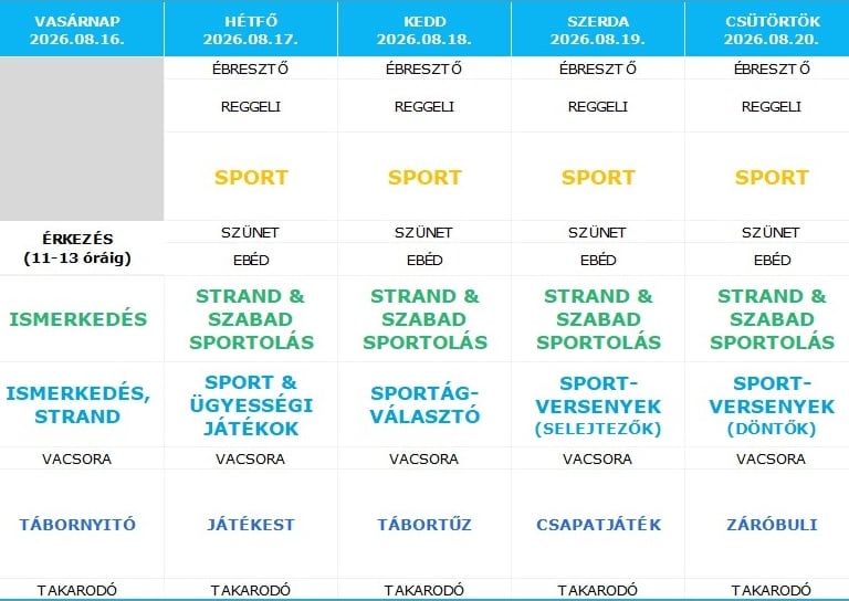 A szállás és a környezet ideális kombinációja garantálja a biztonságos, aktív és élvezetes tábori élményt minden résztvevő számára.